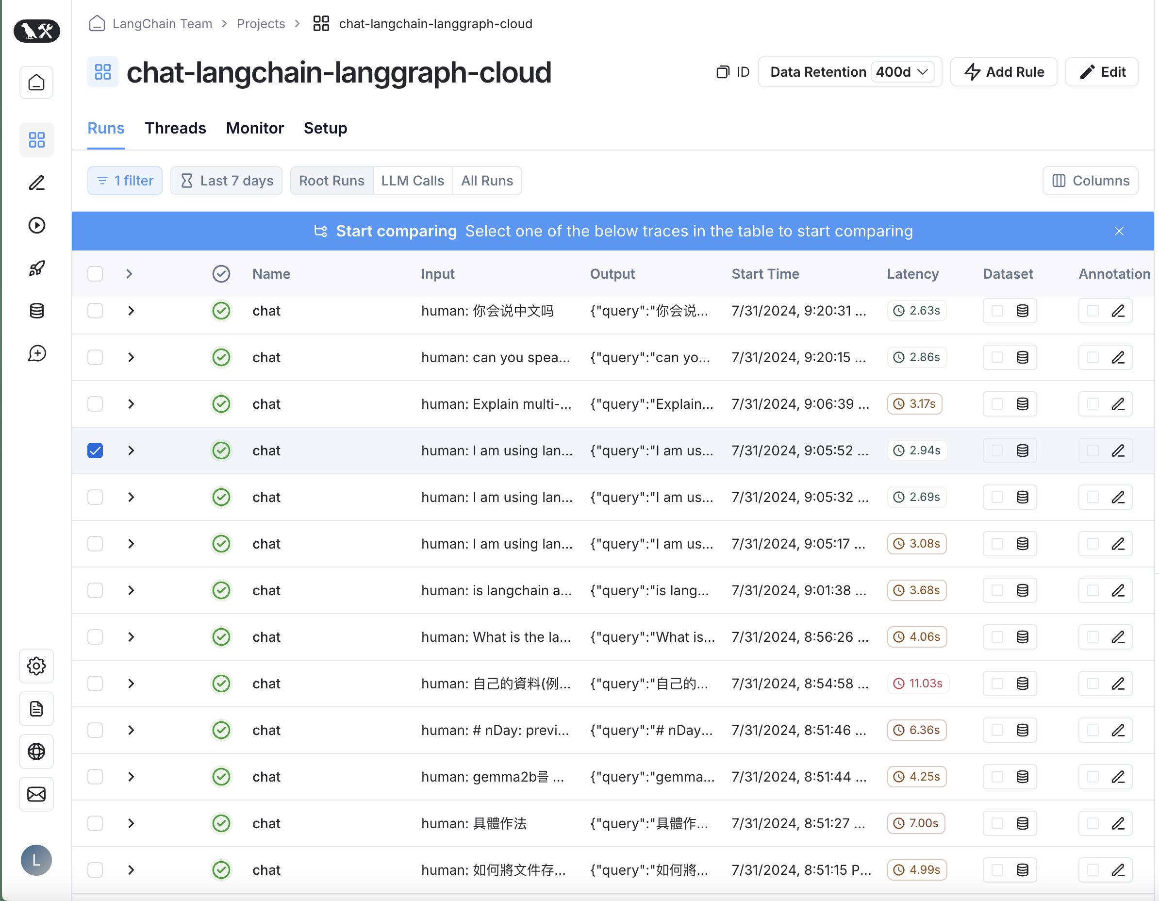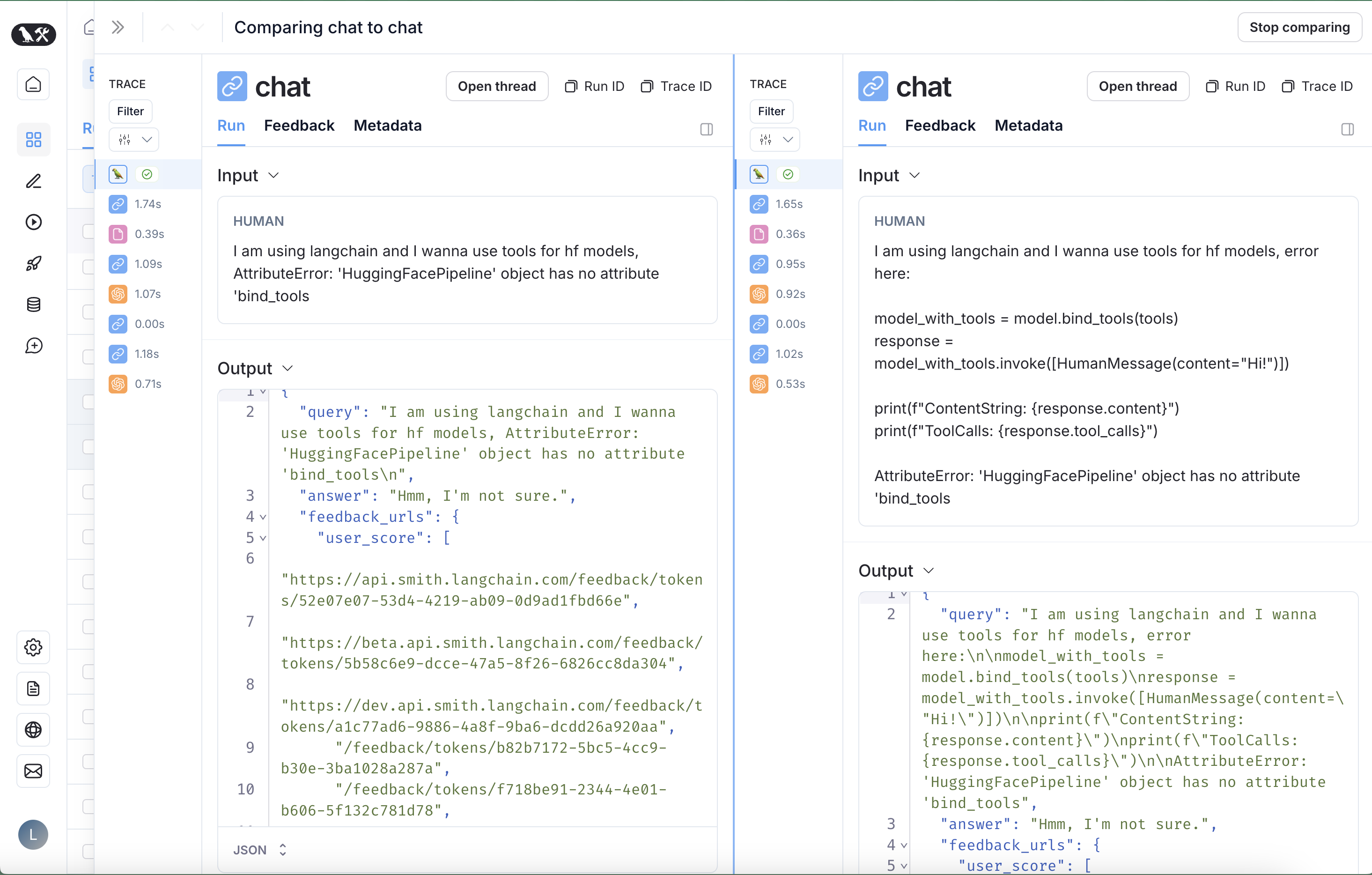 This will show the trace run table. Select the trace you want to compare against original trace.