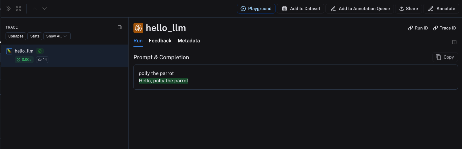 { run_type: "llm", name: "hello_llm", metadata: { ls_provider: "my_provider", ls_model_name: "my_model" } }