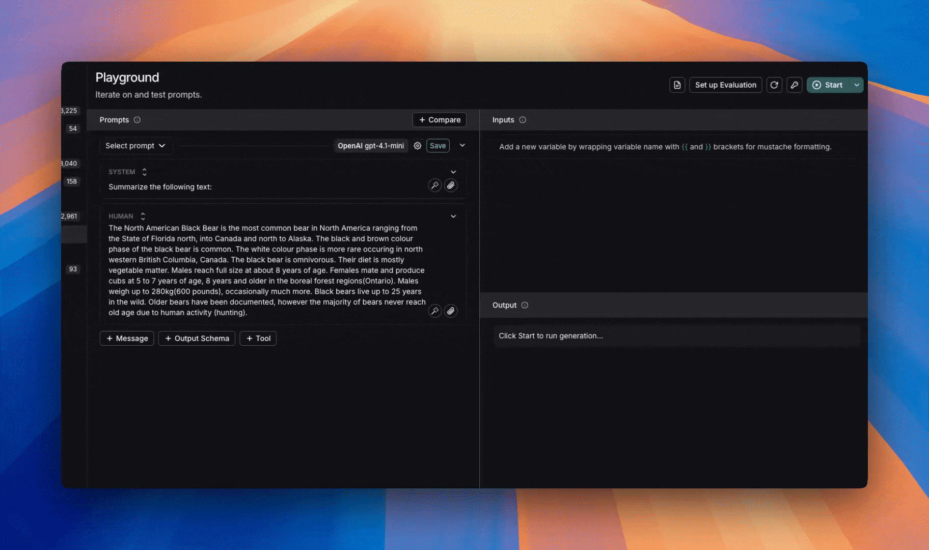 Adding an output schema to your prompt will get output in a structured format. Learn more about structured output here.