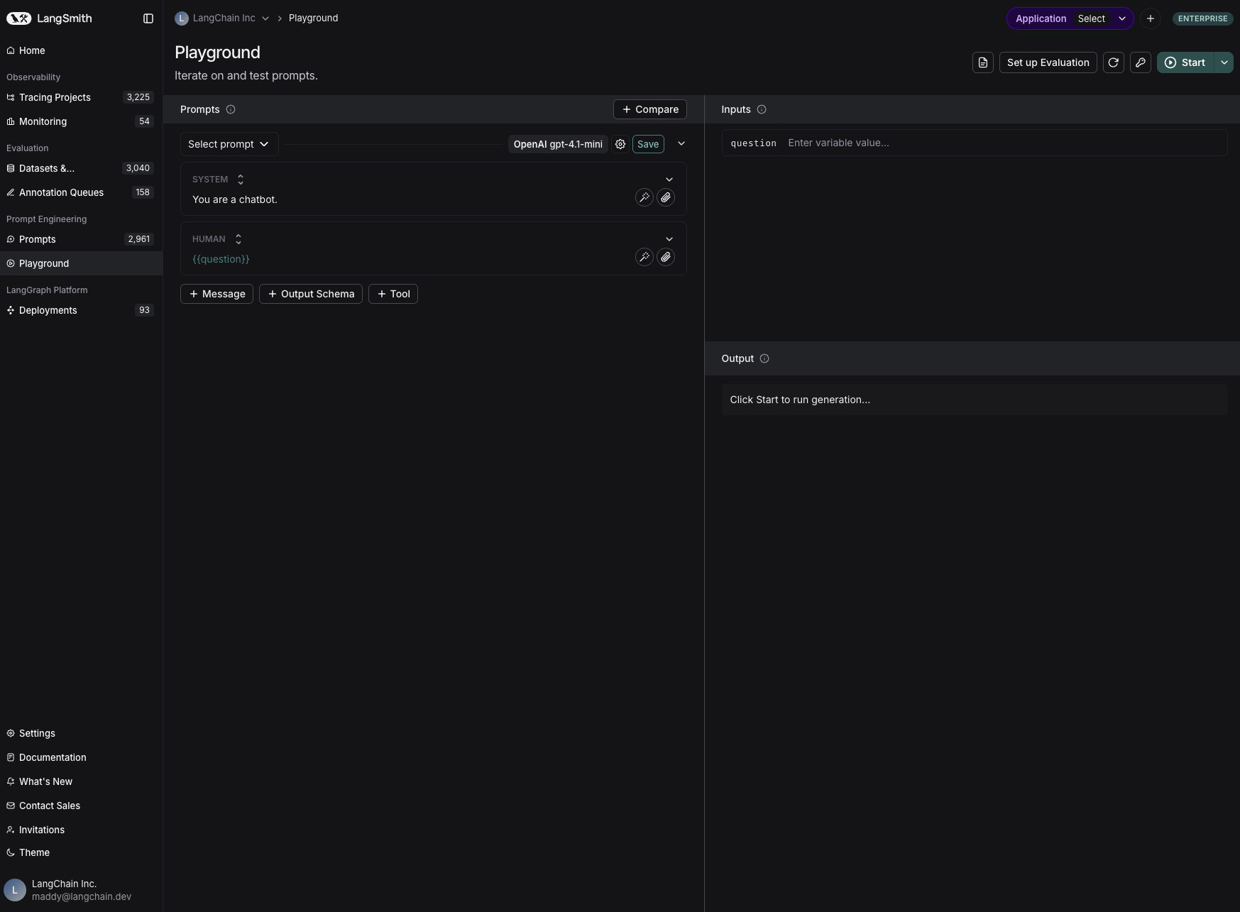Navigate to the Playground in the left-hand sidebar or from the application homepage.