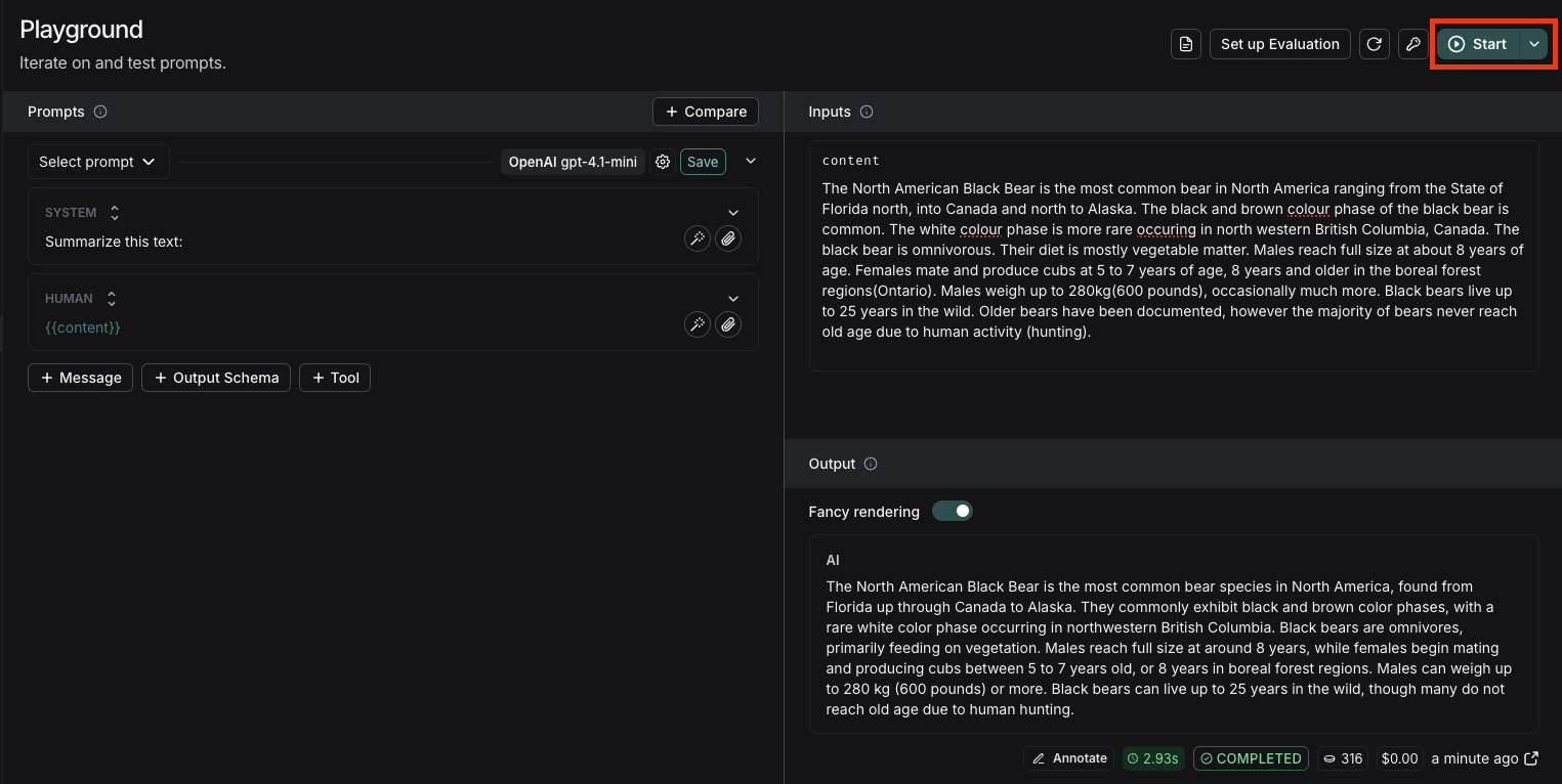 Now that you've created a prompt, you can use it in your application code. See how to pull a prompt programatically.
