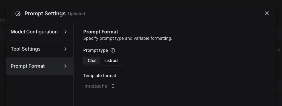 by clicking on the settings icon next to the model -> prompt format -> template format. Learn more about template formats here.